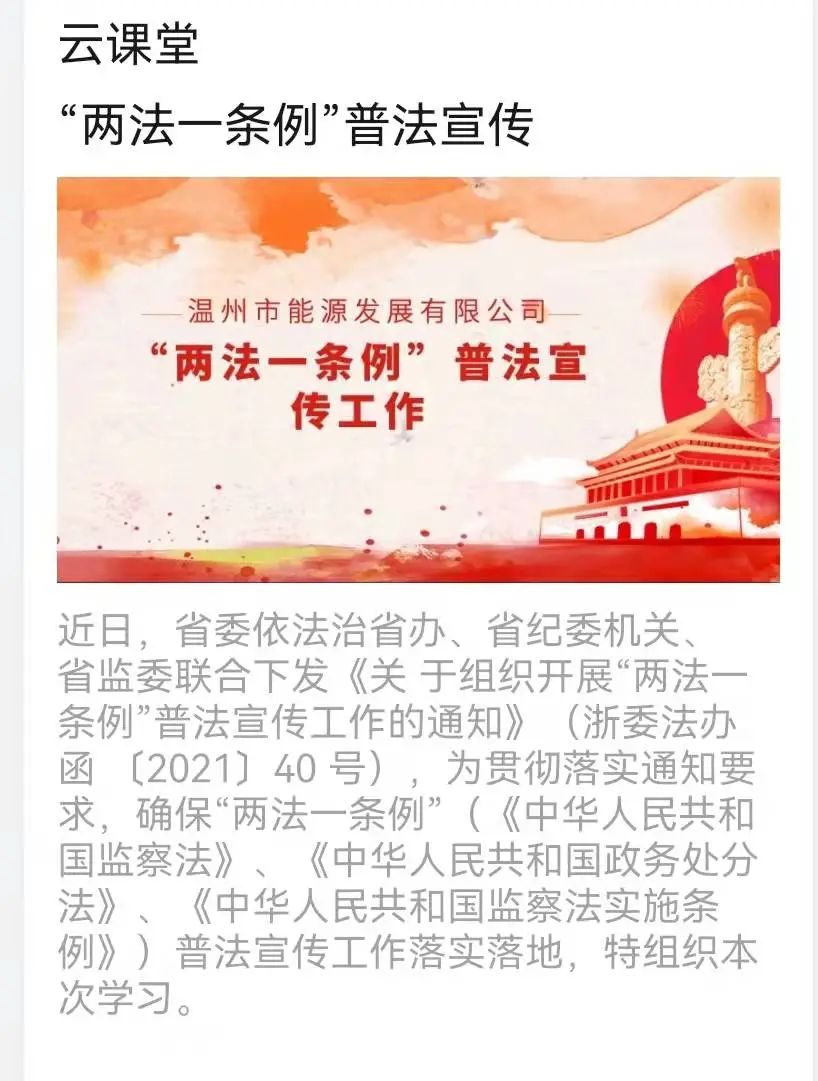為深入學習貫徹習近平法治思想,貫徹落實習近平總書記關于全面從嚴治黨和監(jiān)察體制改革重要論述精神,根據(jù)省委依法治省辦、省紀委機關、省監(jiān)委聯(lián)合下發(fā)《關于組織開展“兩法一條例”普法宣傳工作的通知》的要求,能源公司近日開展了一系列線上線下的“兩法一條例”普法宣傳活動。